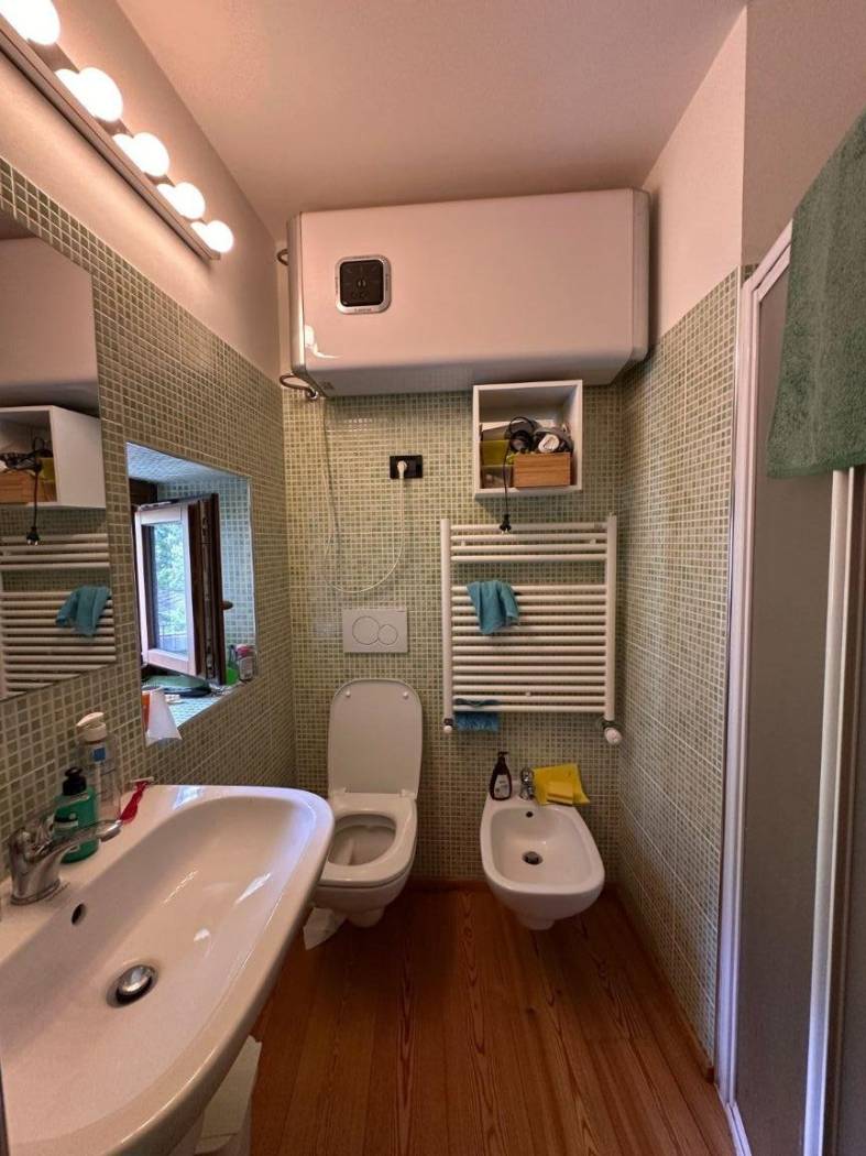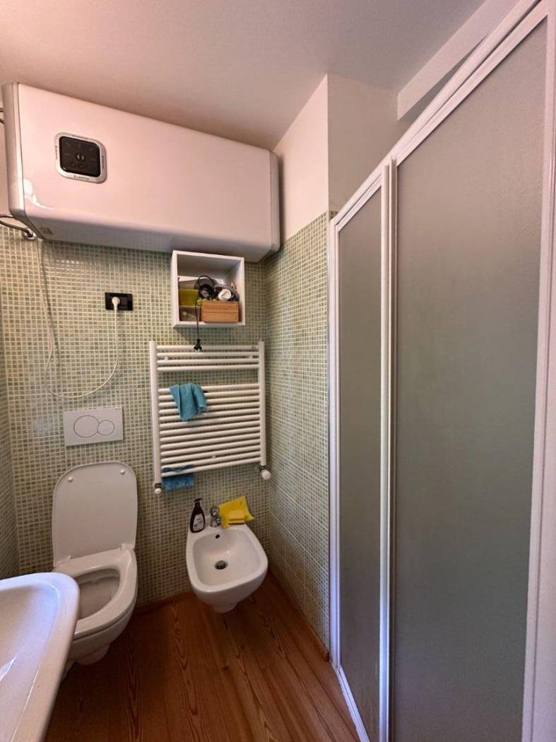L'appartamento dispone di un piccolo giardinetto esterno privato da cui si accede direttamente all'alloggio composto da una zona giorno con angolo cottura, bagno con doccia, camera da letto matrimoniale e cameretta con due posti letto singoli. Collegamento interno con tavernetta privata.